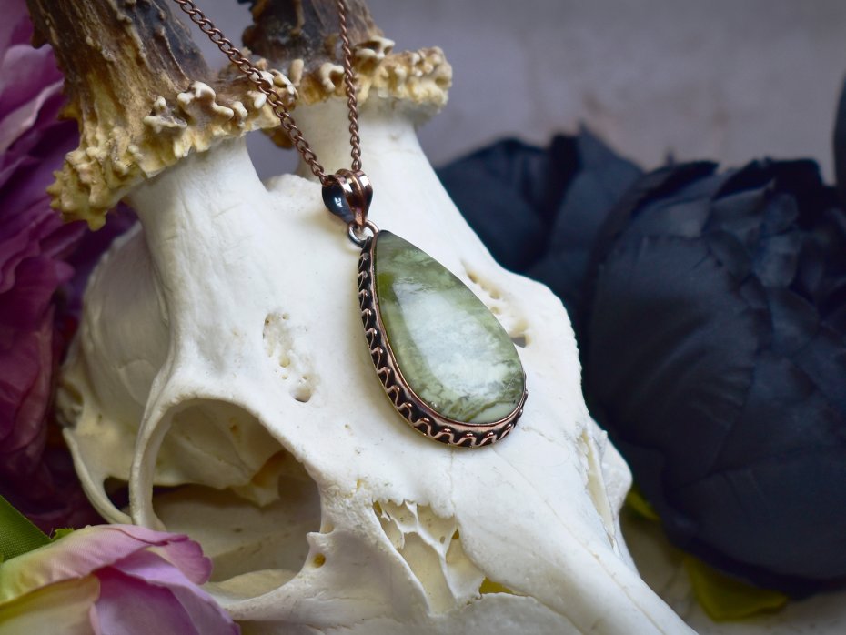 Poza tym zajmuję się oprawą kamieni. Używam kamieni naturalnych, kocham labradoryty, ametysty i kwarce. Do oprawy używam miedzi i cyny w technice tiffany oraz miedzi do elektroformowania. Inspiruję się naturą chcąc stworzyć wisiorki i amulety wyglądające jak z gier fantasy :)