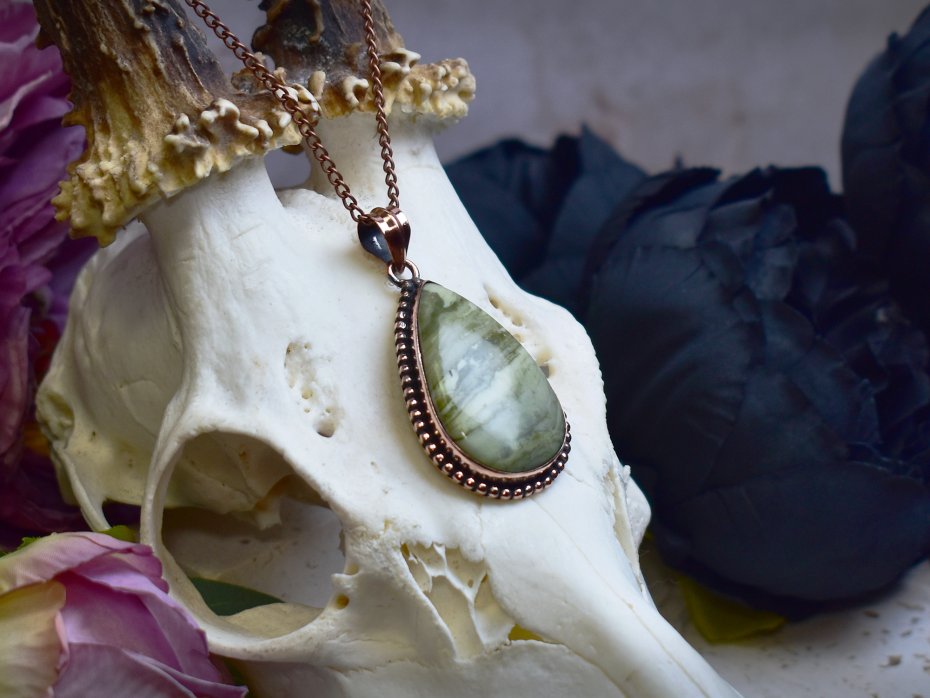 Poza tym zajmuję się oprawą kamieni. Używam kamieni naturalnych, kocham labradoryty, ametysty i kwarce. Do oprawy używam miedzi i cyny w technice tiffany oraz miedzi do elektroformowania. Inspiruję się naturą chcąc stworzyć wisiorki i amulety wyglądające jak z gier fantasy :)