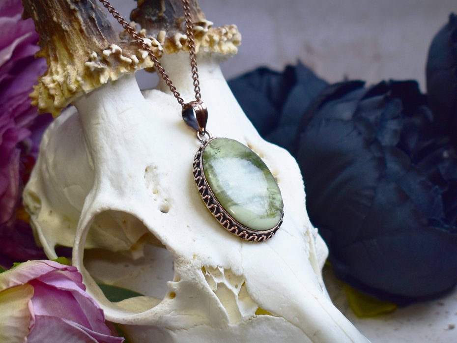 Poza tym zajmuję się oprawą kamieni. Używam kamieni naturalnych, kocham labradoryty, ametysty i kwarce. Do oprawy używam miedzi i cyny w technice tiffany oraz miedzi do elektroformowania. Inspiruję się naturą chcąc stworzyć wisiorki i amulety wyglądające jak z gier fantasy :)