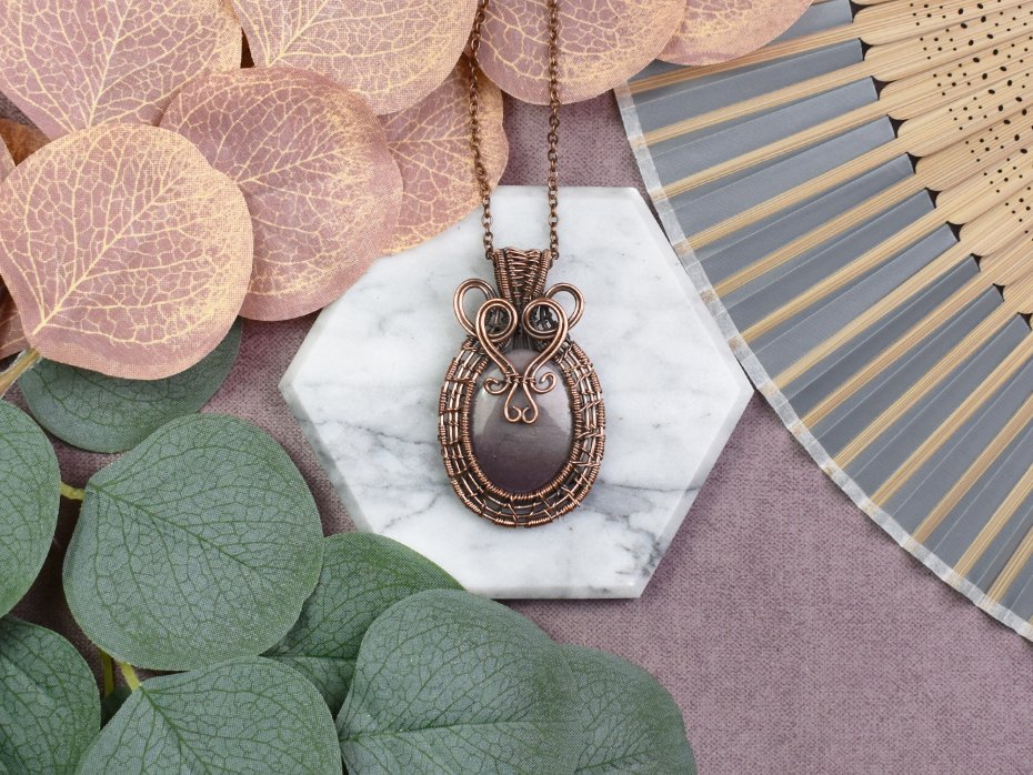 Ten miedziany wisiorek został stworzony przy użyciu techniki wire wrapping z wyjątkowym kamieniem o nazwie mookait. Mookait, znany również jako jaspis mooka, to kamień o bogatej palecie barw, obejmujący odcienie czerwieni, brązu i kremu. Jego właściwości obejmują wzmacnianie poczucia rzeczywistości, pobudzanie zdolności przystosowawczych i zwiększanie pewności siebie. Mookait jest również uważany za kamień przynoszący spokój i równowagę emocjonalną. W połączeniu z misternie wykonanym splotem miedzi, ten wisiorek nie tylko zachwyca estetyką, ale także oferuje noszącemu korzyści zarówno wizualne, jak i energetyczne.