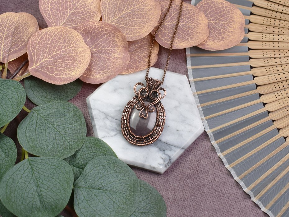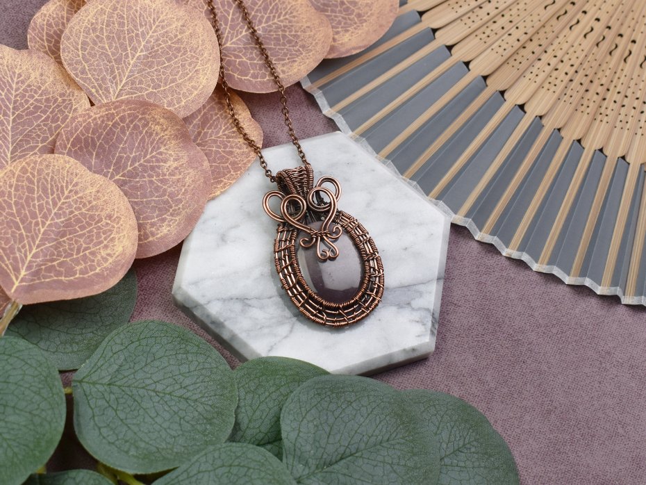 Poza tym zajmuję się oprawą kamieni. Używam kamieni naturalnych, kocham labradoryty, ametysty i kwarce. Do oprawy używam miedzi i cyny w technice tiffany oraz miedzi do elektroformowania. Inspiruję się naturą chcąc stworzyć wisiorki i amulety wyglądające jak z gier fantasy :)
