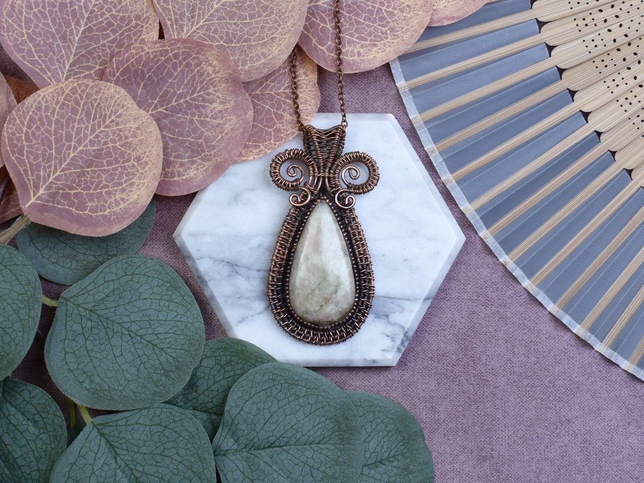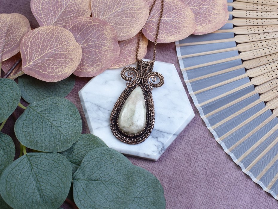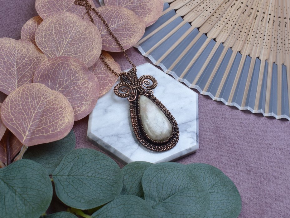Poza tym zajmuję się oprawą kamieni. Używam kamieni naturalnych, kocham labradoryty, ametysty i kwarce. Do oprawy używam miedzi i cyny w technice tiffany oraz miedzi do elektroformowania. Inspiruję się naturą chcąc stworzyć wisiorki i amulety wyglądające jak z gier fantasy :)