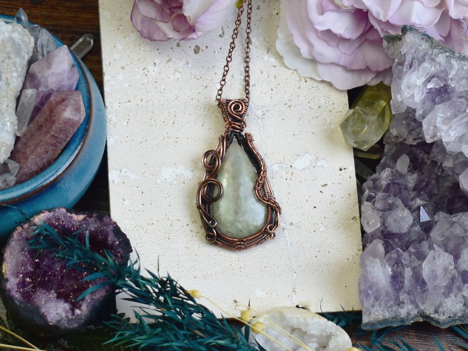 Poza tym zajmuję się oprawą kamieni. Używam kamieni naturalnych, kocham labradoryty, ametysty i kwarce. Do oprawy używam miedzi i cyny w technice tiffany oraz miedzi do elektroformowania. Inspiruję się naturą chcąc stworzyć wisiorki i amulety wyglądające jak z gier fantasy :)