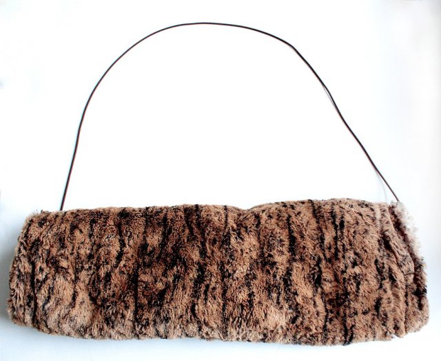 Mięciutka, niezwykle oryginalna mufka, która otuli dlonie i przedramiona. Posiada gumkę do zalożenia na szyję.