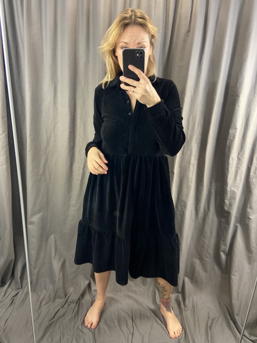 Mięciusia sukienka z materiału imitującego sztruks. 70% bawełna, 25% poliester, 5% elastyna.