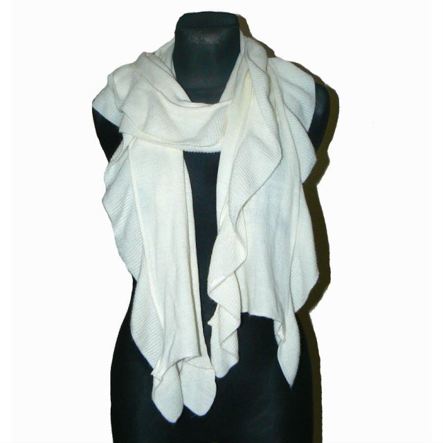 Śmietankowy mięciutki szal. Elegancki, ciekawie uszyty jakby z falban.