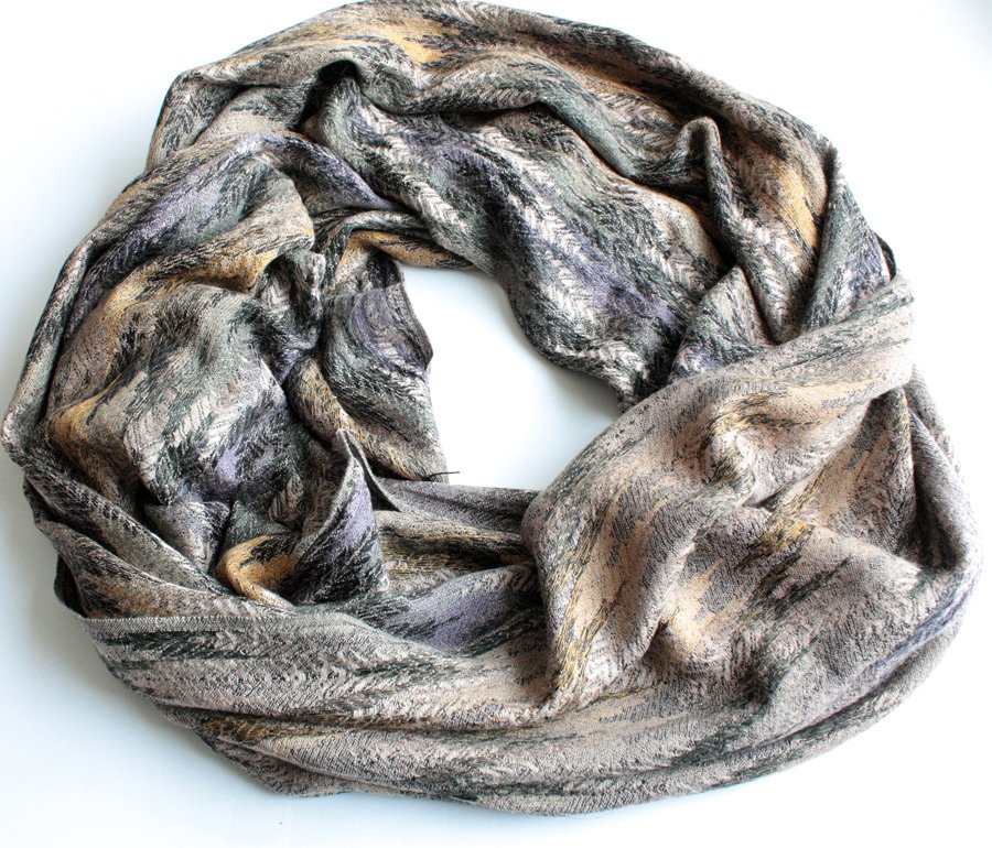 Duży, miękki szal we wzory. Materiał to prawdopodobnie wiskoza.