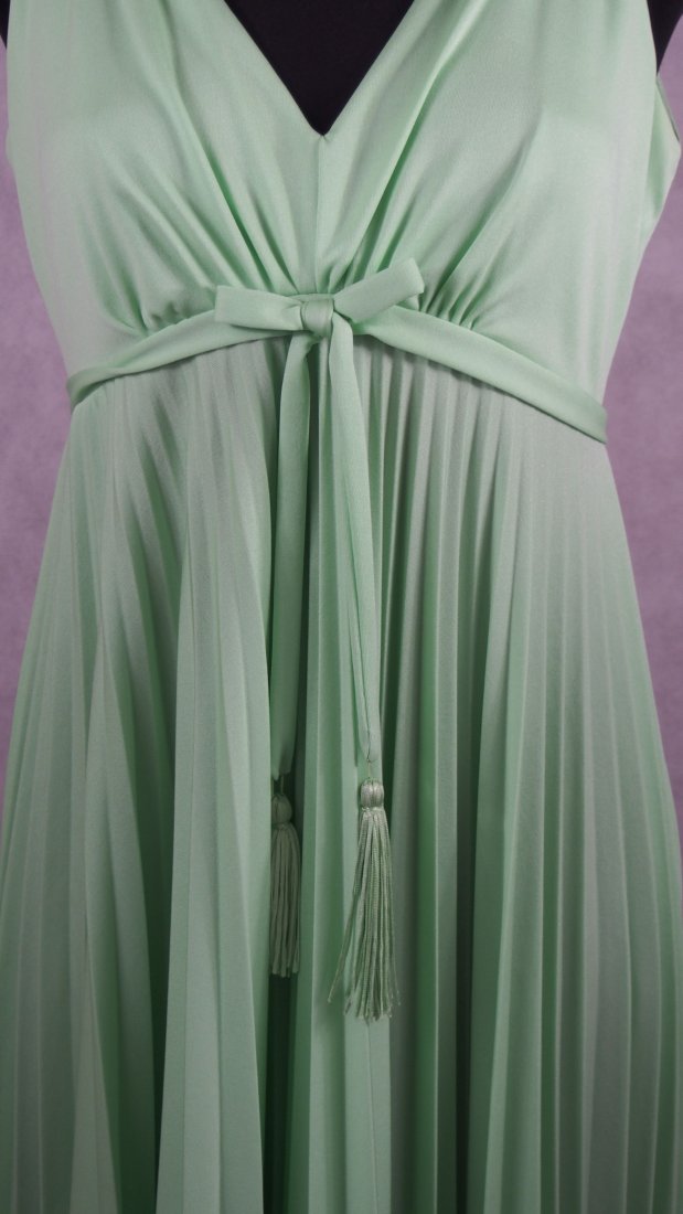 Miętowa sukienka projektu Johna Charles'a z krempilny (odmiana poliestru).