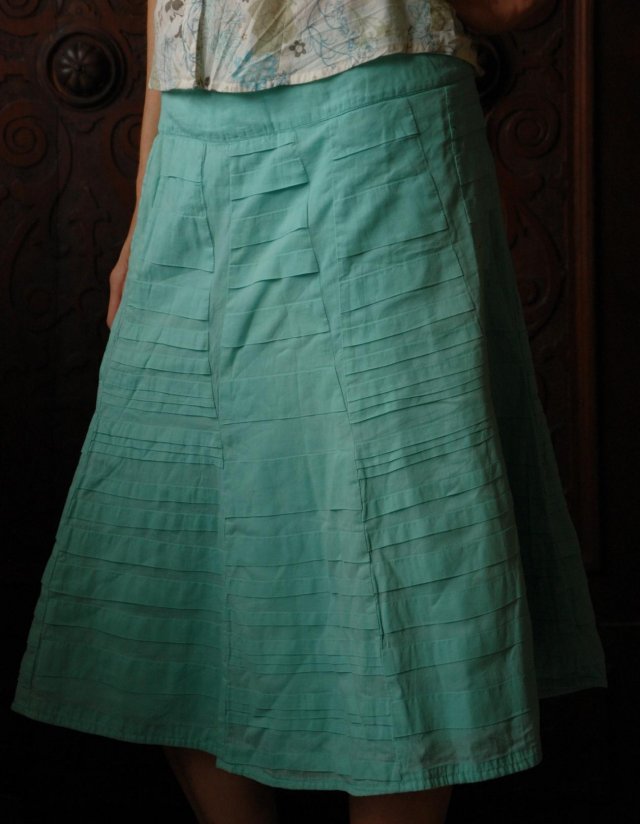 Letnia bawełniana spódnica o ciekawej fakturze, w cudownym, pastelowym odcieniu zieleni.
