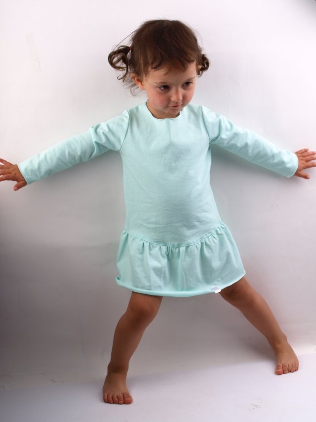 Miętowa sukienka z cienkiej dzianiny dresowej. miękka, elastyczna, rozciągliwa. Tutaj kupujesz rozmiar 92/98 - na 2-3 latka. W wiadomości możesz podać rozmiar jaki zamawiasz, a my przygotujemy w ciągu 1-2 dni. Wymiary tej sukienki: długość całkowita -49cm, długość od paszki - 35cm, długość rękawa paszki-24cm. Potrzebujesz inny rozmiar - napisz do nas.