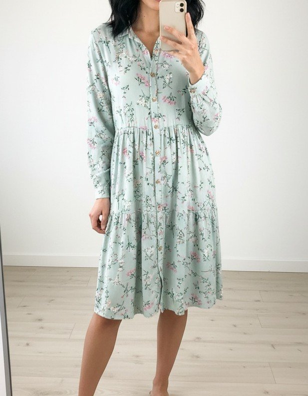 Tagi: #miętowy kolor, #naturalny skład, #sukienka w kwiaty, #wiskoza