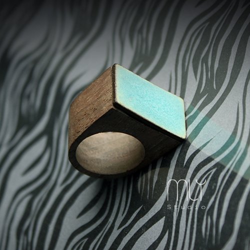 Efektowny pierścień z ceramicznym oczkiem, ręcznie wykonanym z gliny kamionkowej, poszkliwionym mieszanką zielonych matowych szkliw z efektem plamek.Element ceramiczny osadzony na drewnianej bazie, wymiary oczka ok 13x24mm., średnica wewnętrzna pierścionka 1,8cm ( na zamówienie dostępne inne kolory i rozmiary) Polecam