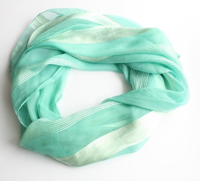 Piękny, miętowy szal w subtelne pasy.