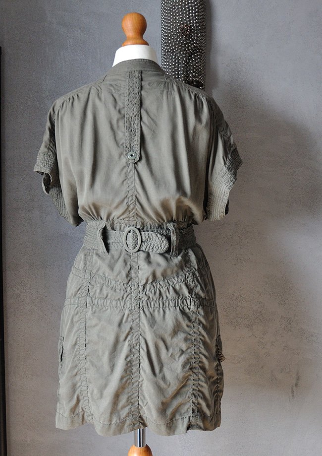 Sukienka mini (można nosić także do legginsów czy obcisłych spodni jako tunikę lub kamizelkę) uszyta z przyjemnego, miękkiego lyocellu. Projekt marki RIVER ISLAND. Kolor wojskowej zieleni - khaki.