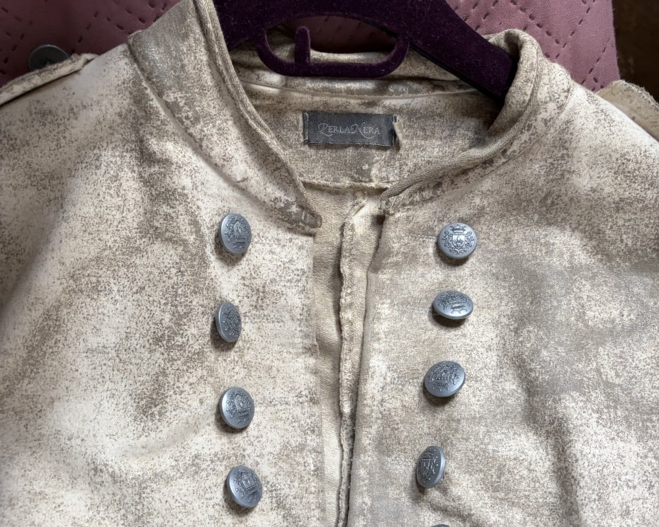 Tagi: #cotton kurtka damska, #oliwkowa kurtka asymetryczna, #perła nera made in italy l, #Żakiet military style