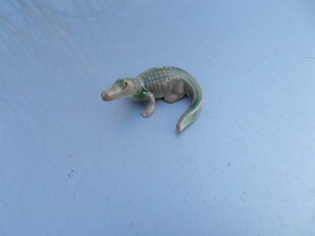 Niewielka figurka uroczego KROKODYLKA. Dość ciężka,pełna...wygląda na porcelanową,ale głowy nie dam. Na błyszcząco wykończona.Ładnie wykonana. Miły drobiazg :) Do kolekcji ;)