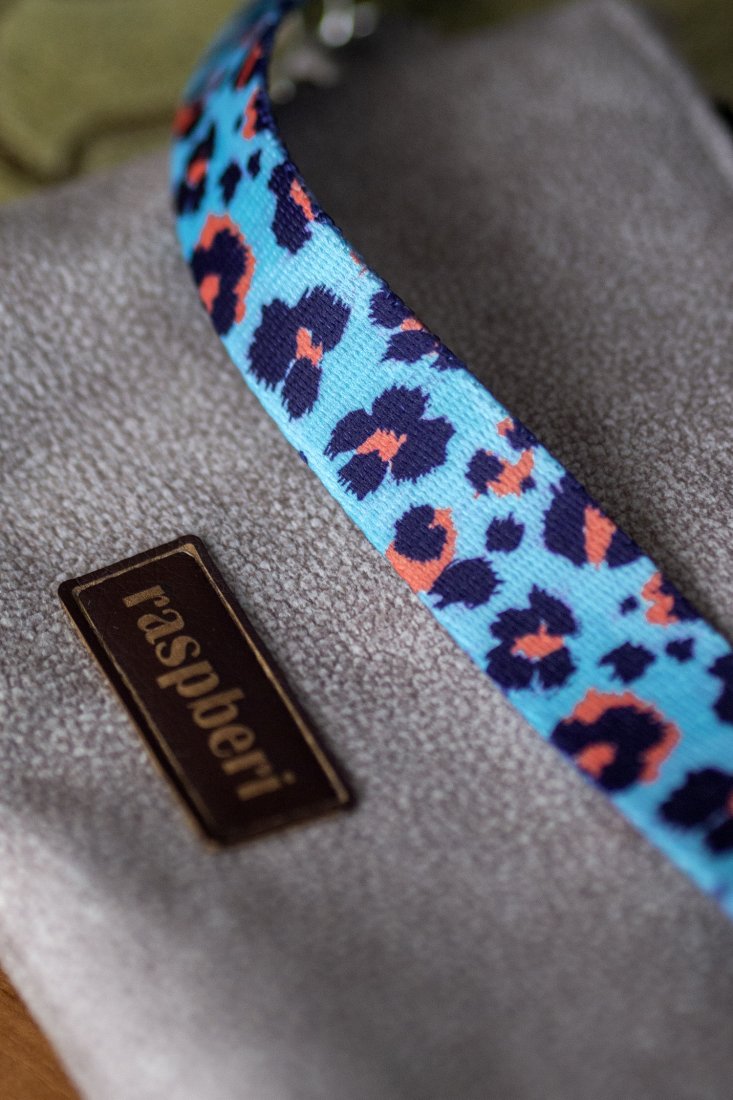 Torebka posiada regulowany kolorowy pasek i srebrne okucia.