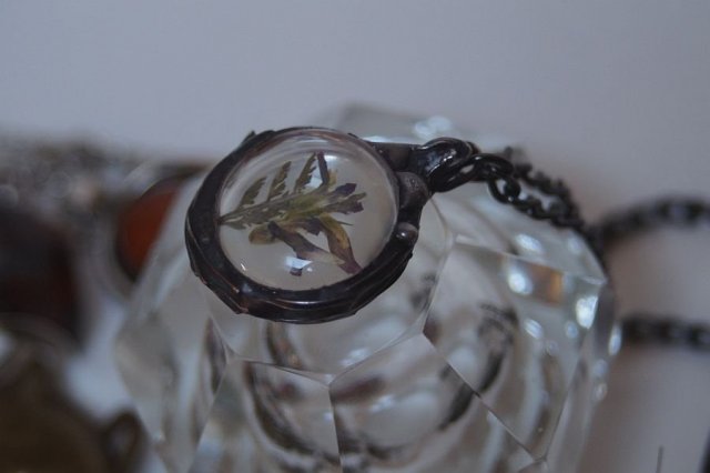 Wykonany z mosiądzu,miedzi i szkla.W środku zasuszone kwiatuszki.