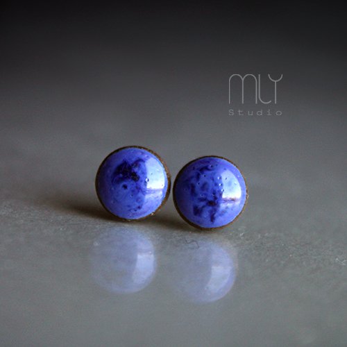 Ceramiczne okrągłe kolczyki w formie sztyftów, ręcznie wykonane z delikatnej gliny kamionkowej jednostronnie szkliwione błękitnym szkliwem z efektem plamek i pięknym połyskiem, na antyalergicznych sztyftach w kolorze srebrnym. Średnica ok. 6mm. Polecam . Termin realizacji zamówienia to 1-2 dni.