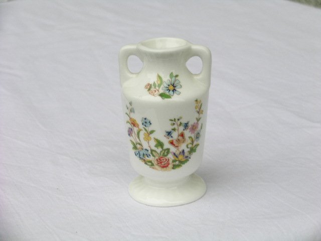 Miniaturowy, kolekcjonerski wazonik od Aynsley, z kultowej serii Cottage Garden. Jakość i szlachetność porcelany i malatury. Charakterystyczny wzór ogrodowo-motylowy :) Edycja miniatur wielce ceniona. Błyszczące wykończenie. W pełni uźytkowy, choć uroczo niewielki. 4,5 x 8 cm. Stan zachowania bardzo dobry.