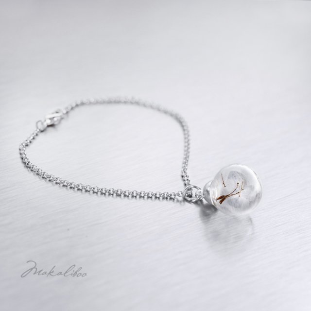 Niezwykle, delikatny, elegancki, kobiecy naszyjnik z nasionami dmuchawca zamkniętymi swobodnie w szklanej kuli. Każdy egzemplarz jest niepowtarzalny. Nasionka zostały specjalnie spreparowane i nie zmienią swojego wyglądu podczas noszenia. Naszyjnik ma średnicę 16 mm. Długość łańcuszka 45 cm. Baza w kolorze srebrnym. Dmuchawiec jest symbolem inteligencji, otwartego umysłu, siły przetrwania, czystości, szczęścia. Ofiarowany przez kogoś - uznawany jest za symbol absolutnej wierności i początku czegoś nowego. Projekt autorski. Wszystkie prawa zastrzeżone.