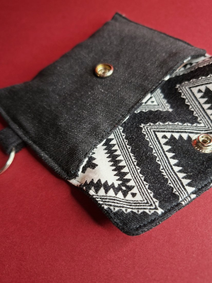 Tagi: #azteckie wzory, #etui na karty, #etui na słuchawki, #jeansowe