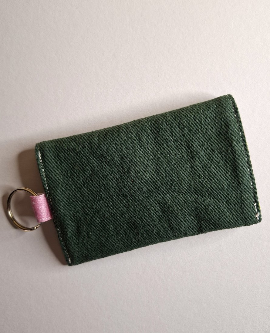Sprytna szlufka z kółkiem: portfelik posiada wszytą szlufkę z metalowym kółeczkiem, dzięki któremu możesz go bezpiecznie przypiąć karabińczykiem do wnętrza plecaka lub do spodni.
