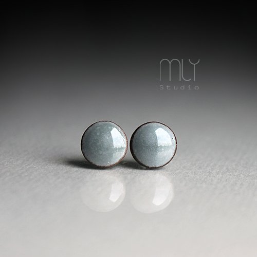 Ceramiczne okrągłe kolczyki w formie sztyftów, ręcznie wykonane z delikatnej czekoladowobrązowej gliny kamionkowej, jednostronnie szkliwione mieszanką szarych szkliw z efektem plamek, na antyalergicznych sztyftach w kolorze srebrnym. Średnica ok. 6mm. Polecam