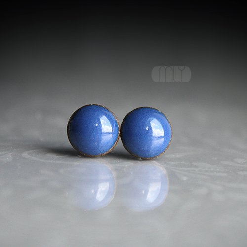 Ceramiczne okrągłe kolczyki w formie sztyftów, ręcznie wykonane z delikatnej gliny kamionkowej jednostronnie szkliwione mieszanką błękitnych szkliw z efektem plamek, na antyalergicznych sztyftach w kolorze srebrnym. Średnica ok. 6mm. Polecam . Termin realizacji zamówienia to 1-2 dni.