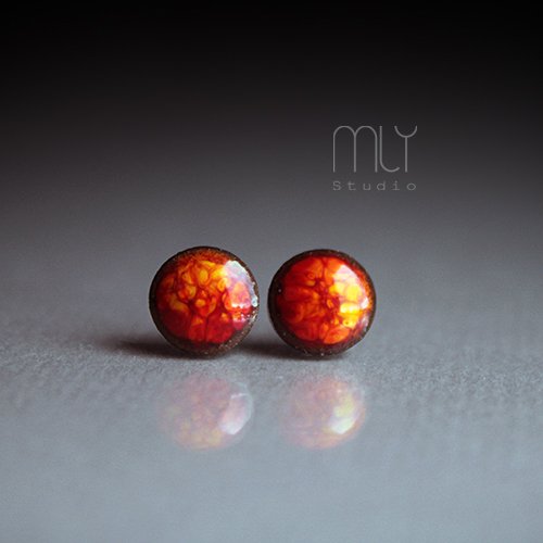 Ceramiczne, lekko nieregularne kolczyki w formie sztyftów, ręcznie wykonane z delikatnej gliny kamionkowej, jednostronnie szkliwione efektownym beżowobrązowym szkliwem z efektem plamek, na antyalergicznych sztyftach w kolorze srebrnym.Średnica ok. 6mm. Polecam