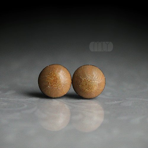 Ceramiczne okrągłe kolczyki w formie sztyftów, ręcznie wykonane z delikatnej gliny kamionkowej jednostronnie szkliwione brązowym szkliwem z efektem plamek, na antyalergicznych sztyftach w kolorze srebrnym. Średnica ok. 6mm. Polecam . Termin realizacji zamówienia to 1-2 dni.