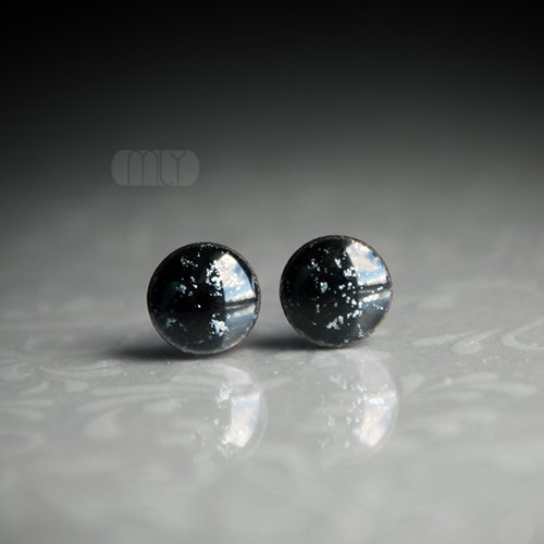 Ceramiczne okrągłe kolczyki w formie sztyftów, ręcznie wykonane z delikatnej gliny kamionkowej jednostronnie szkliwione mieszanką czarnogranatowych szkliw z efektem plamek, na antyalergicznych sztyftach w kolorze srebrnym. Średnica ok. 6mm. Polecam . Termin realizacji zamówienia to 1-2 dni.