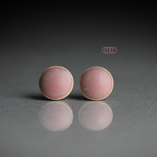 Ceramiczne okrągłe kolczyki w formie sztyftów, ręcznie wykonane z delikatnej gliny kamionkowej, jednostronnie szkliwione mieszanką kremowych szkliw z efektem plamek, na antyalergicznych sztyftach w kolorze srebrnym. Średnica ok. 6mm. Polecam