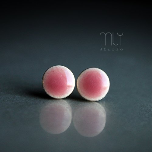 Ceramiczne okrągłe kolczyki w formie sztyftów, ręcznie wykonane z delikatnej gliny kamionkowej jednostronnie szkliwione mieszanką różowych z efektem plamek i pięknym połyskiem, na antyalergicznych sztyftach w kolorze srebrnym. Średnica ok. 6mm. Polecam . Termin realizacji zamówienia to 1-2 dni.