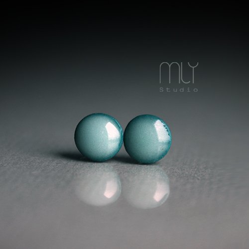 Efektowne kolczyki w formie sztyftów, ręcznie wykonane z delikatnej barwionej na zielono porcelany, jednostronnie szkliwione blado zielonym szkliwem, na antyalergicznych sztyftach w kolorze srebrnym.długość elementu ceramicznego ok 6mm, Polecam