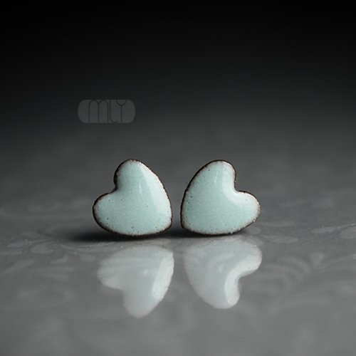 Ceramiczne kolczyki w formie sztyftów, ręcznie wykonane z delikatnej gliny kamionkowej, jednostronnie szkliwione szarobłękitnym szkliwem z efektem plamek, na antyalergicznych sztyftach w kolorze srebrnym.Średnica ok. 7mm.. Polecam . Termin realizacji zamówienia to 1-2 dni