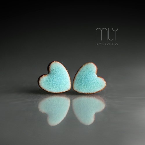 Ceramiczne kolczyki w formie sztyftów, ręcznie wykonane z delikatnej gliny kamionkowej, jednostronnie szkliwione turkusowym szkliwem z efektem plamek, na antyalergicznych sztyftach w kolorze srebrnym.Średnica ok. 7mm.. Polecam . Termin realizacji zamówienia to 1-2 dni