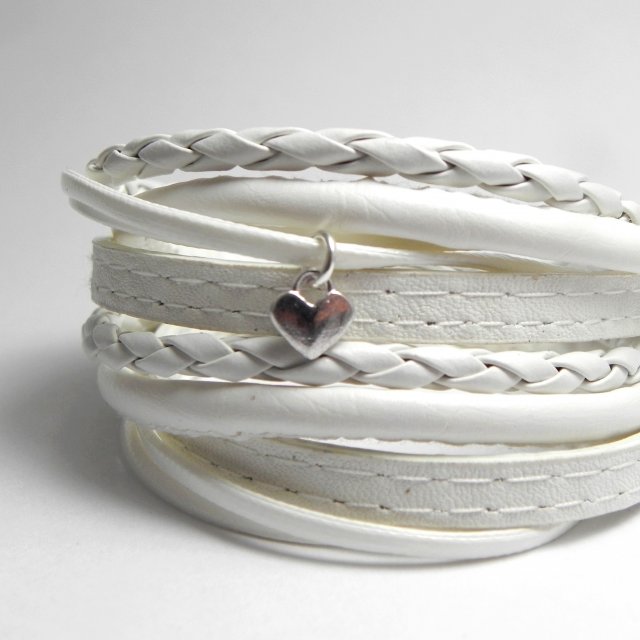 Bransoletka wykonana tylko w JEDNYM EGZEMPLARZU, z różnorodnych rzemieni ze skóry ekologicznej oraz elementów w kolorze srebrnym. Bransoletka będzie pasowała na nadgarstek 15-16 cm, podwójnie owijana wokół nadgarstka.