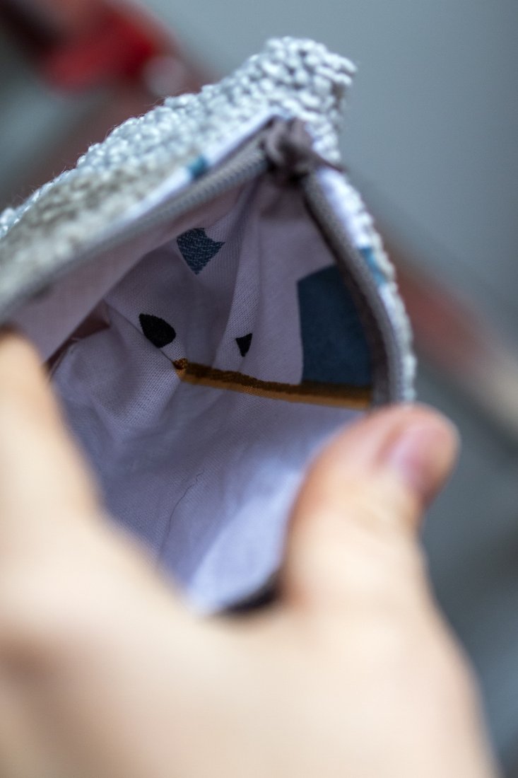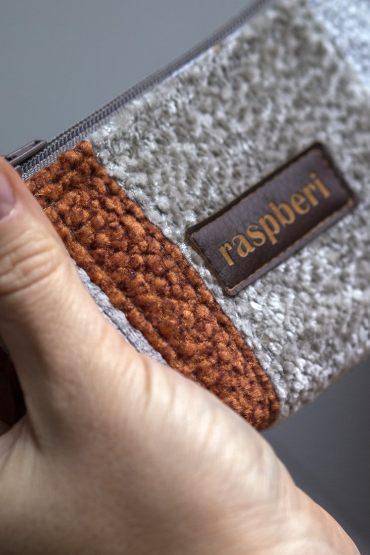 Kosmetyczka w rozmiarze MINI wykonana z kilku rodzajów tkanin. Stworzona w duchu no waste.