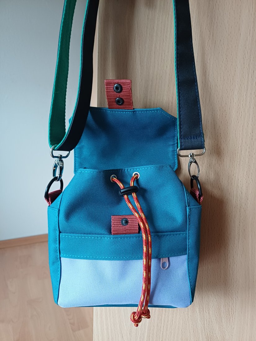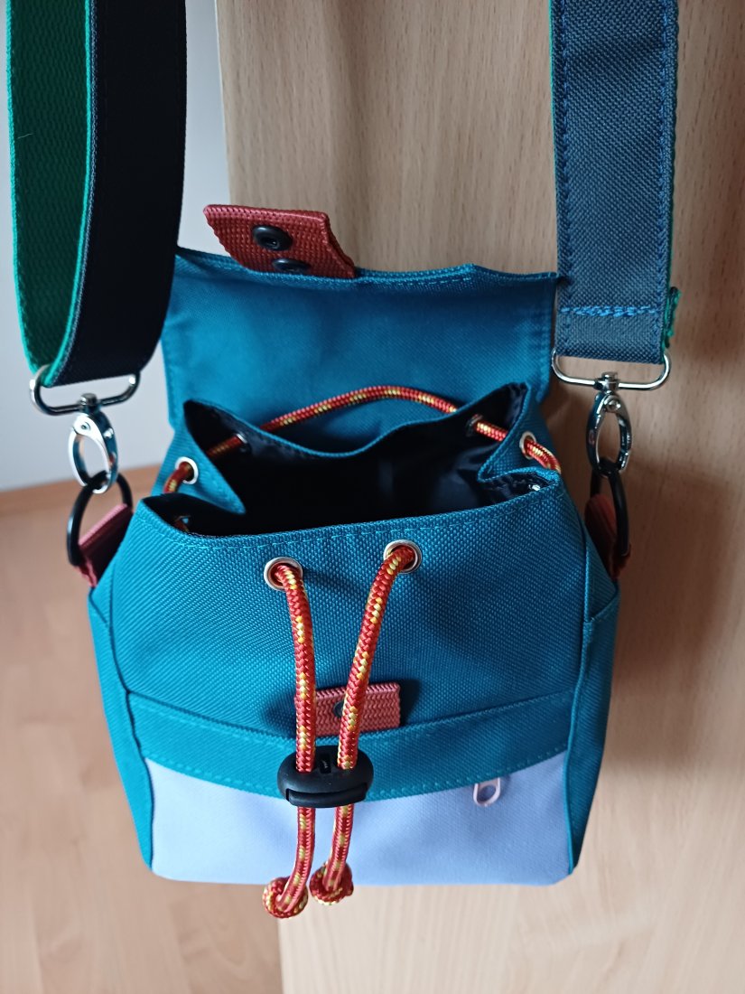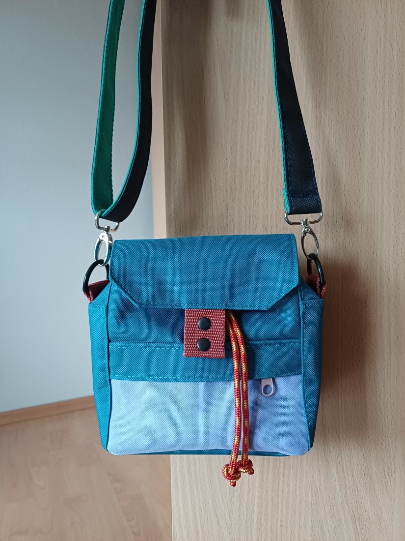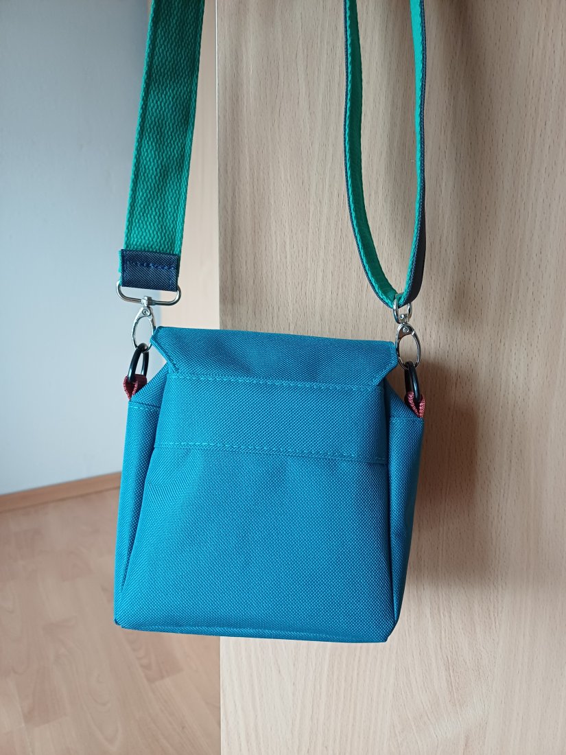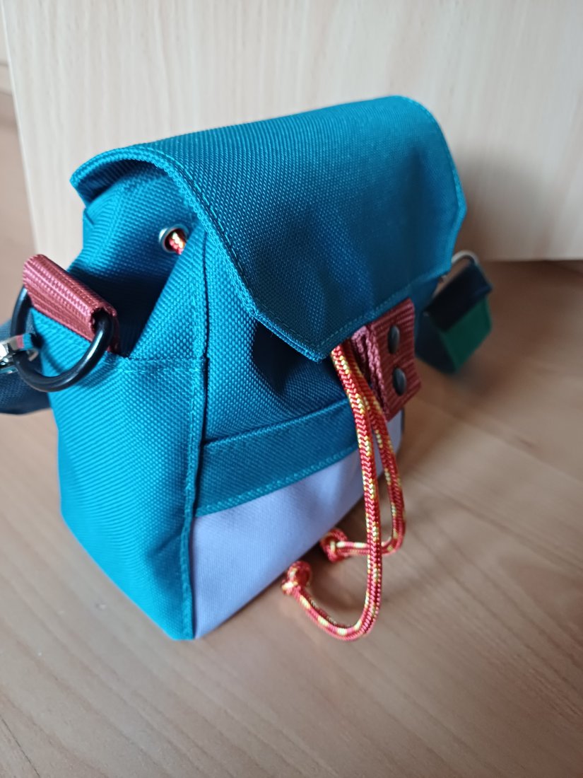 Mini torebka wykonana z tkaniny nieprzemakalnej kodury.