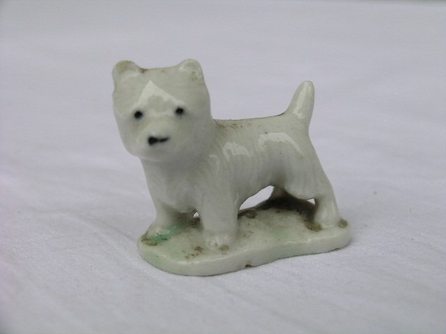 Maleńka ceramiczna figurka - Westie w pełnej krasie i mini wymiarze. Błyszczące szkliwienie. Figurka lita, nie sygnowana. 3 x 2 x 2,5 cm. Stan zachowania bardzo dobry.