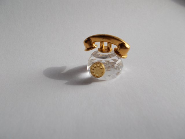Kolekcjonerska MIniatura Kryształ i złoty metal. TELEFON ,uroczy i dekoracyjny. Miniatura do kolekcji i na ciekawy prezent.Klasa.Światło lubne, tęcze tworzące...urocze w formie i wielkości ;)