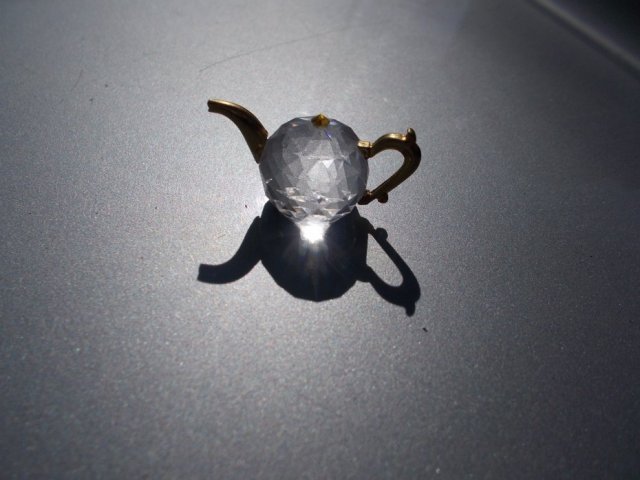 Kolekcjonerska MIniatura Kryształ i złoty metal.CZAJNIK IMBRYK ,uroczy i dekoracyjny. Miniatura do kolekcji i na ciekawy prezent.Klasa.Światło lubne, tęcze tworzące...urocze w formie i wielkości ;)