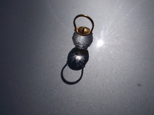 Kolekcjonerska MIniatura Kryształ i złoty metal.CUKIERNICA - POJEMNIK Z UCHEM na mikro nóżkach - stópkach.U roczy i dekoracyjny. Miniatura do kolekcji i na ciekawy prezent.Klasa.Światło lubne, tęcze tworzące...urocze w formie i wielkości ;)