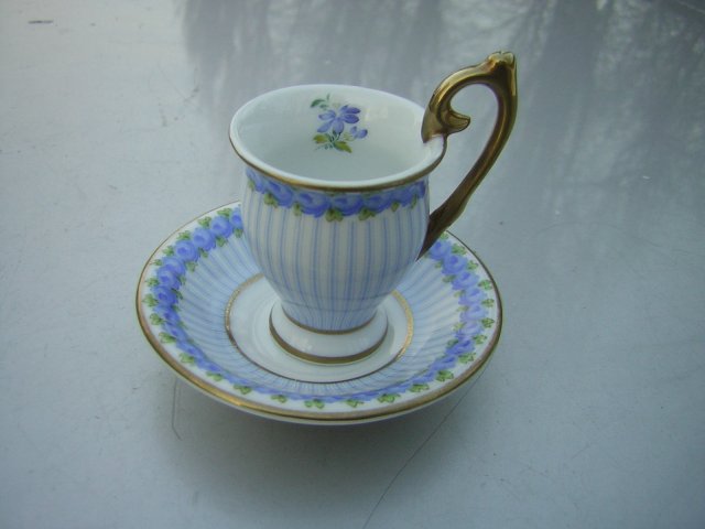Filiżanka - szer 5 cm góra 4 cm dół 2,5 wys z uchem około 6 cm wys bez ucha trochę ponad 4,5 cm Stan zachowania bardzo dobry.