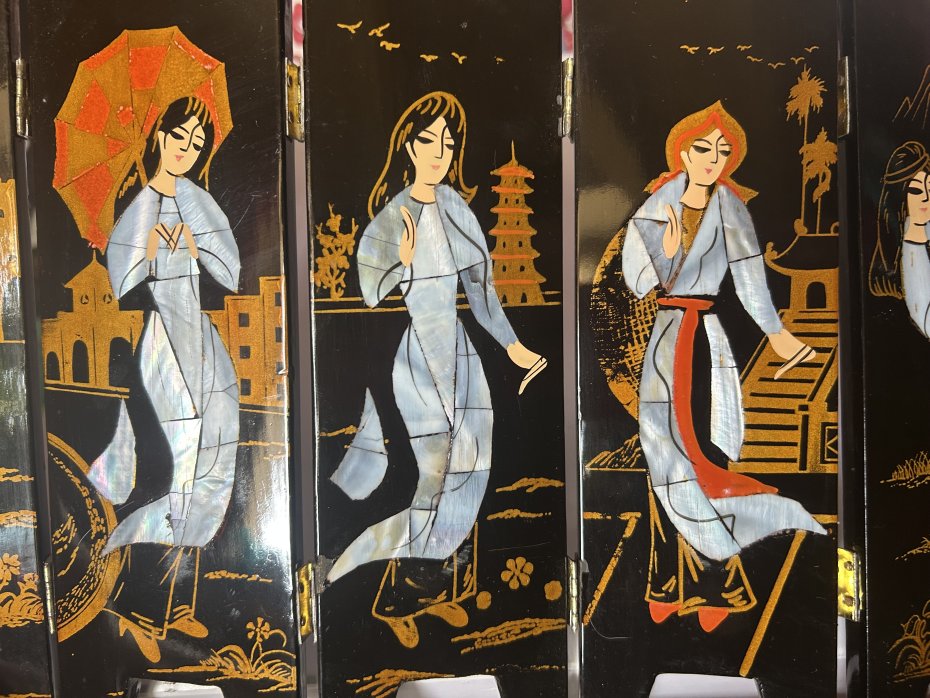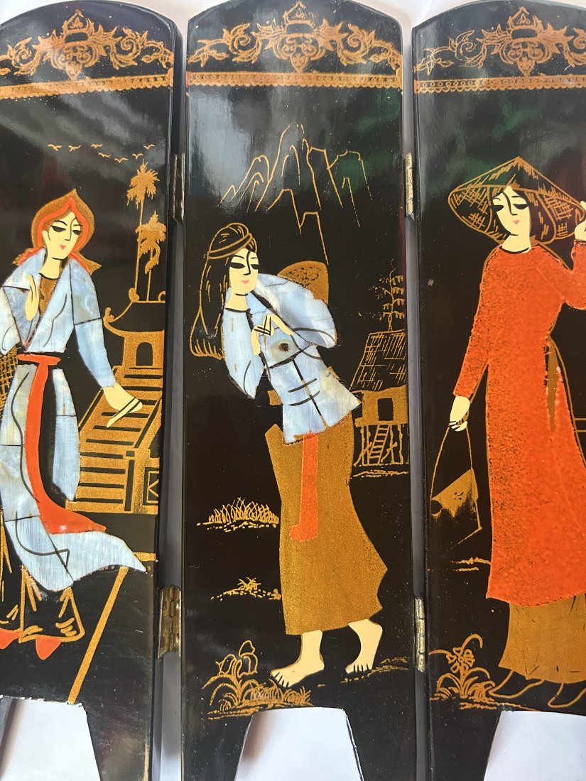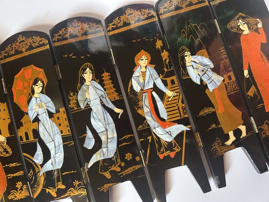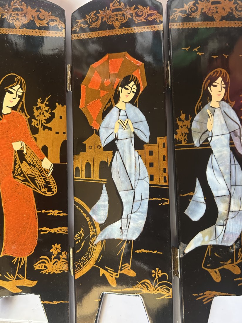 Tagi: #antyk sztuka orientu, #chiny lata 50 sztuka oryginał, #miniatura parawan dekoracja, #ręcznie malowany inkrustowwny