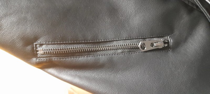 Jak nowa czarna ramoneska z bardzo fajnej eko skóry stan idealny rozmiar z metki 46 ale w realu mniejszy długość 55 pod pachami 57x2 max dół 54x2