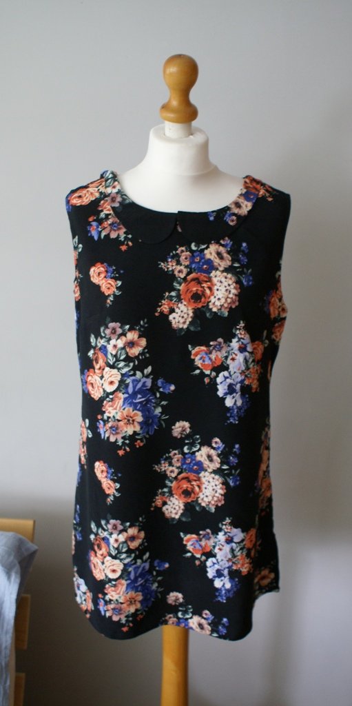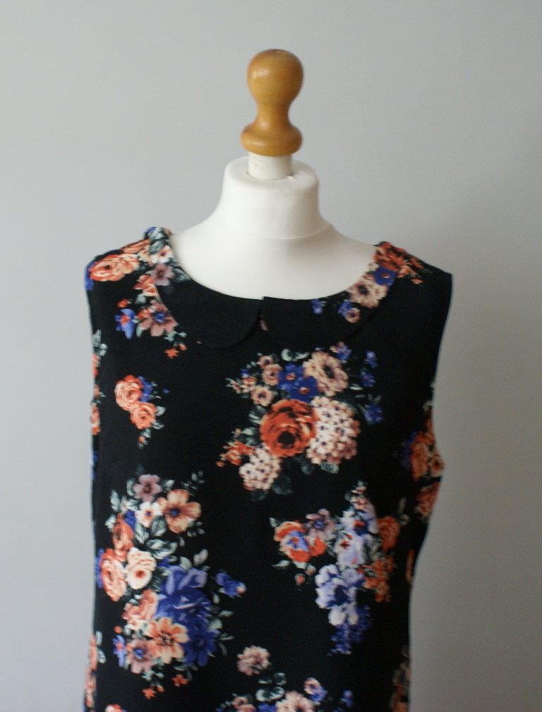 Piękna krótka sukienka w kwiaty z uroczym kołnierzykiem