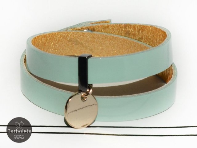 Tagi: #bransoletka skórzana, #miętowa, #skóra lakierowana, #zawieszka