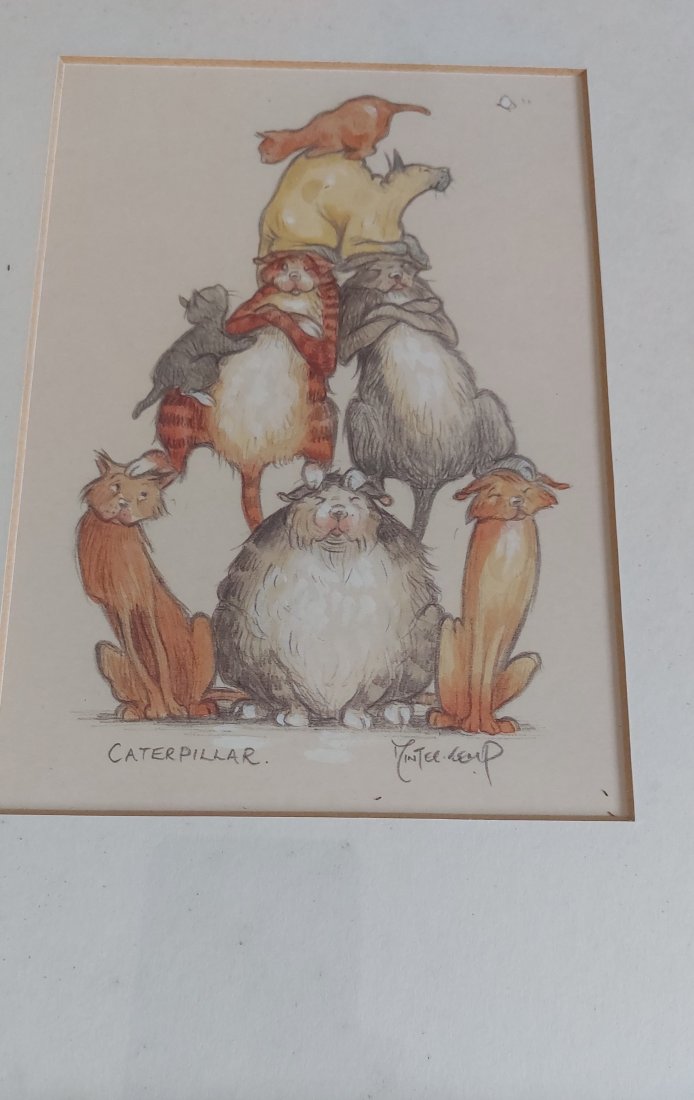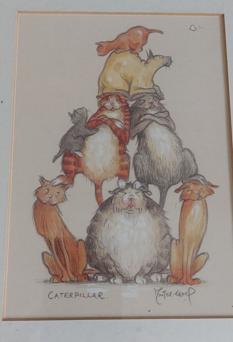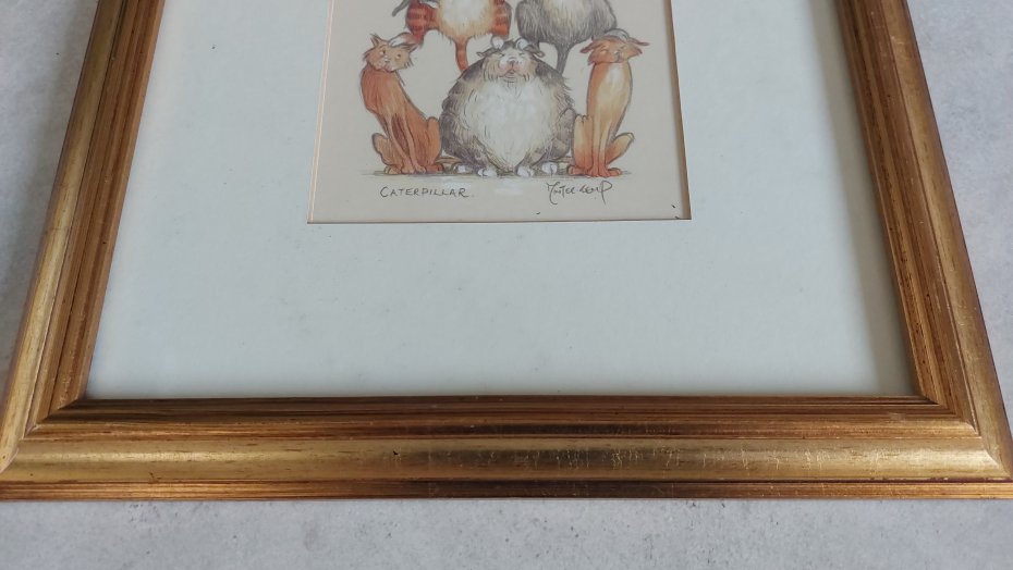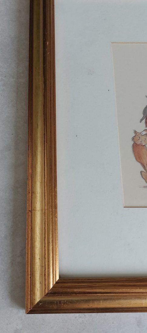 Humorystyczna ilustracja,wydruk w drewnianej ramie. Stan: ślady użytkowania.